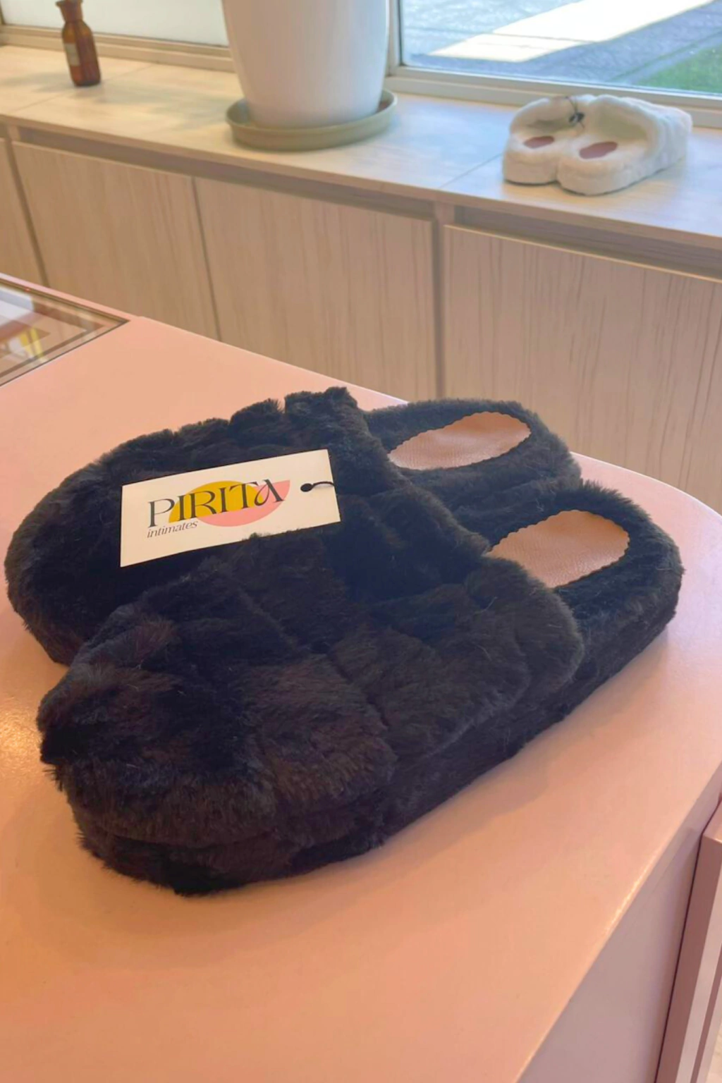 Pantuflas peluditas, suaves y cómodas como un abrazo.